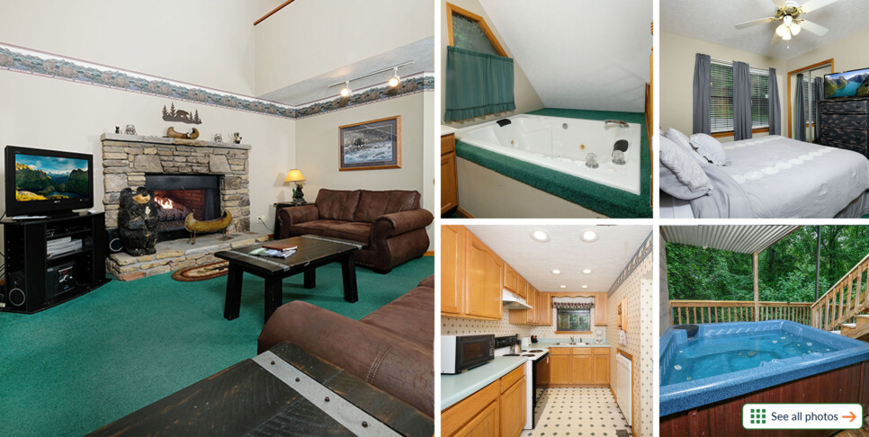 Back inside your Gatlinburg cabin rental, you’ll appreciate a mix of 1 king bed, 1 full bed, and 1 sleeper sofa. High speed Wi-Fi is free and convenient to plan your downtown and national park excursions. There’s also an indoor jetted tub for spa baths, a washer/dryer to stay on top of laundry, and a TV in every bedroom for added entertainment during your Smoky Mountain vacation.