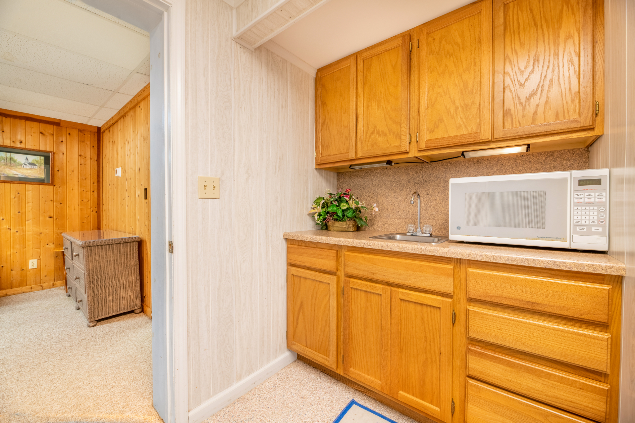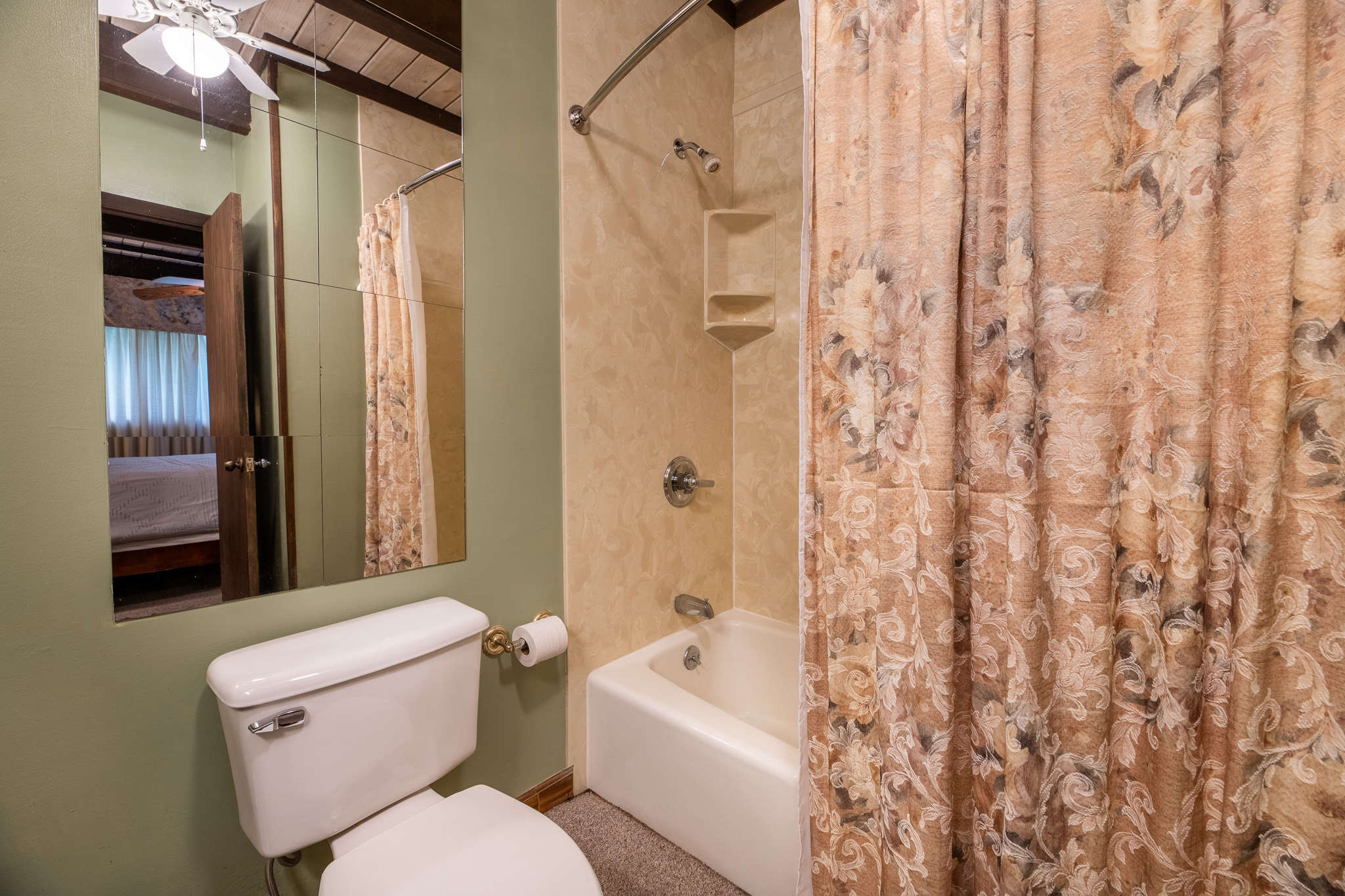 A ceiling fan keeps the chef cool, while the ample counter space and modern conveniences make cooking easy and enjoyable. Stock up on your favorite ingredients, and enjoy the convenience of making your morning coffee, packing picnic lunches, or cooking family dinners in the comfort of your cabin.