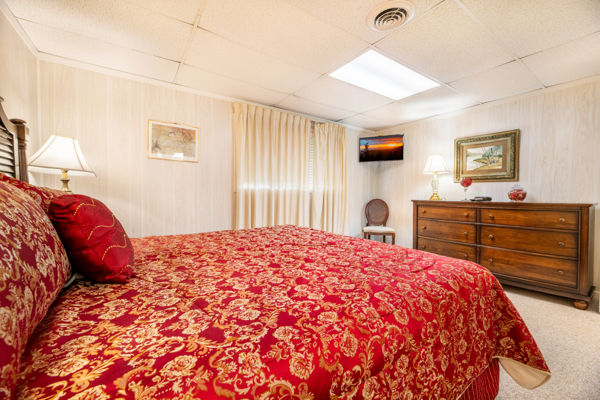 Featuring all the major appliances you need to prepare meals, from an electric range and oven to a refrigerator, microwave, and dishwasher, the fully equipped kitchen at this vacation home is ready for homemade meals and midnight treats.