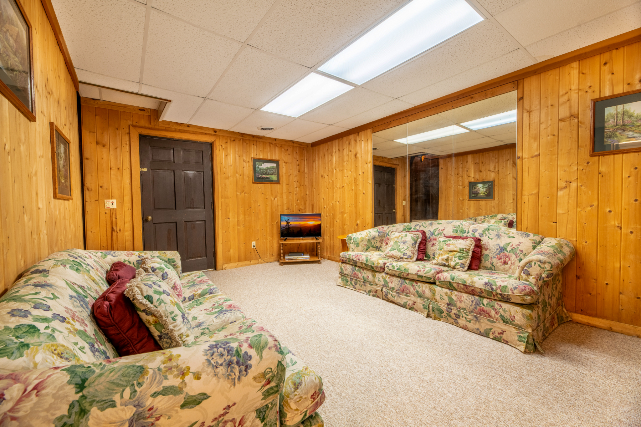 After a full day of arcades, shopping, and escape games in Gatlinburg, head to the lower level for fun and entertainment in the game room. A pool table is ready for friendly competition, while a 32-inch smart TV with a DVD player and film selection sets the stage for movie nights.
