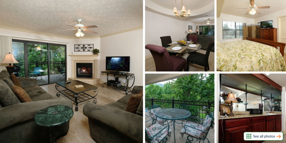 This Gatlinburg condo rental also has a washer/dryer, Wi-Fi, TVs in the bedrooms (plus king beds), CD and DVD players, and a reserved parking spot for guests’ convenience.