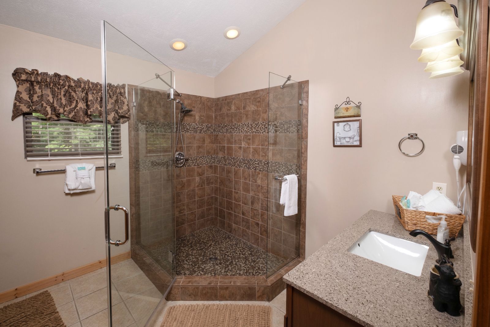 Ready to cook or just reheat leftovers from town? The fully equipped kitchen at your vacation rental makes it easy. Enjoy sleek stone counters, a double sink with a window, major appliances for big meals, and 2 coffeemakers — one for full pots and another for single-cup sips. Whether you’re hosting a pancake breakfast before a mountain hike or making cocoa after skiing, this space has everything you need.