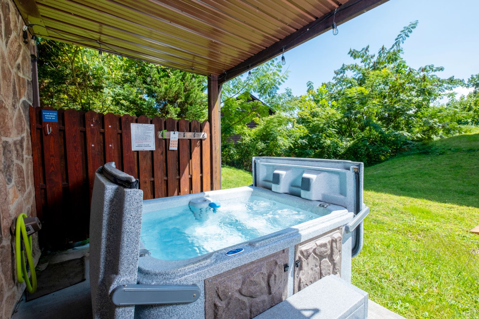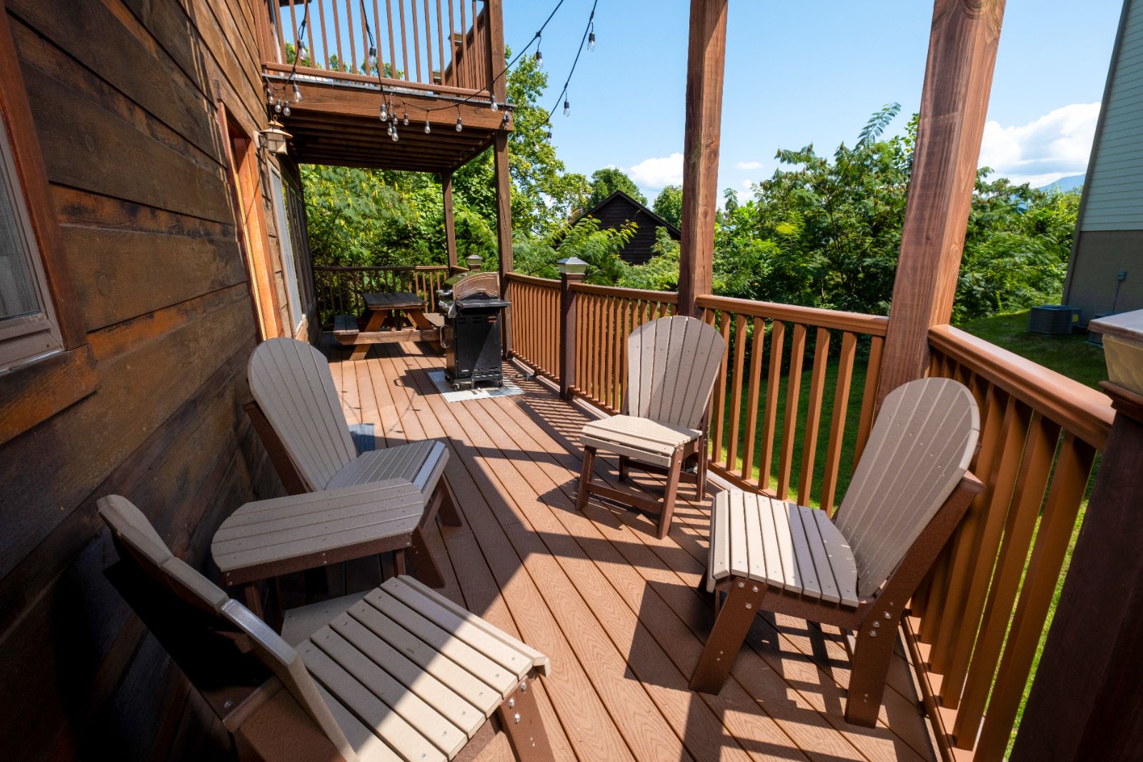 From rocking chairs to hot tub soaks and outdoor dining, the outdoor spaces at your rental cabin let you enjoy the Smokies the way they were meant to be enjoyed. Grill steaks on the gas grill, eat at the picnic table by twinkling lights, relax on a private balcony, or unwind in the hot tub on the covered patio.