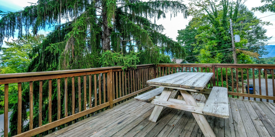 Fire up the gas grill and throw on some prime steaks, veggie kabobs, taco burgers, or hot dogs for a fun mountain cookout at your cabin rental in Gatlinburg. From the spacious deck, you can view the scenic treetops and even spot mountain peaks in the distance on clear days (especially during the winter months). You can set the picnic table for a meal in nature, sip morning coffee in the Adirondack chairs, or slip into the bubble hot tub with massaging water jets!